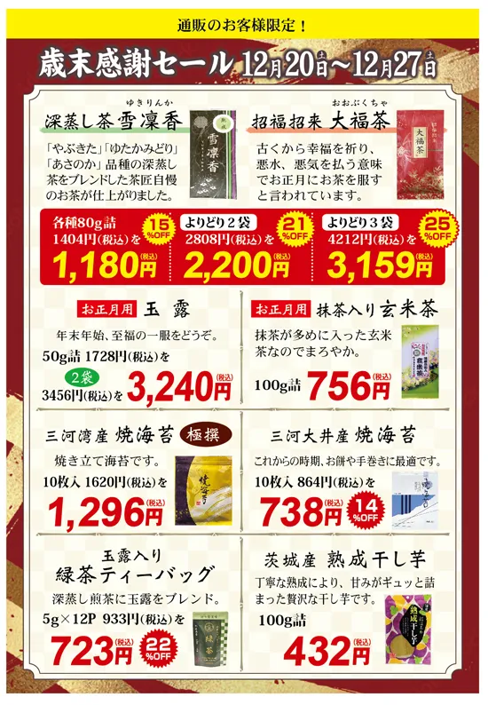 直営店舗セールのお知らせ 12/20~1/10まで(巣鴨店は1/14、通販は12/27まで)
